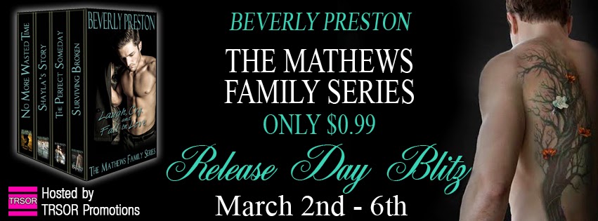 Sinfully sexy, emotionally rich contemporary romance series! Stunning love stories set in exotic destinations such as Bora Bora, Greece, Italy and more. Laugh, cry and fall in love with The Mathews Family one Happily Ever After at a time: with a Hollywood A-list actor, a sexy contractor, an Italian winemaker, and a dream-come-true architect.